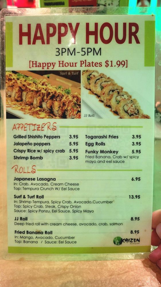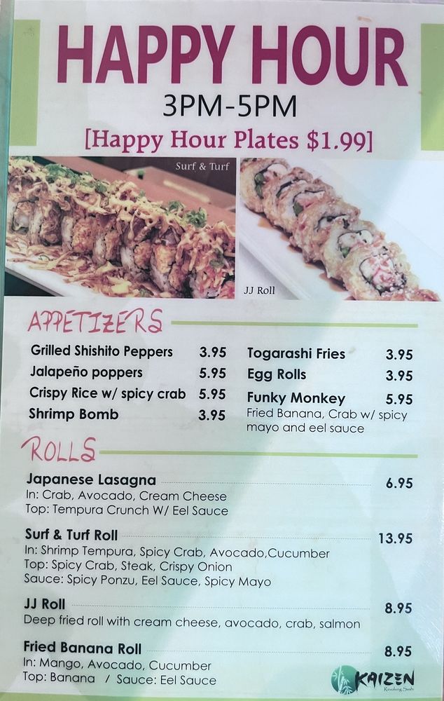 Kaizen is not only family-friendly but also exceptionally accommodating, offering vegan and vegetarian options along with mouthwatering desserts like Tempura Green Tea Ice Cream. The establishment's casual atmosphere is perfect for lunch, dinner, or happy hour, where fantastic pricing makes delicious sushi even more accessible.