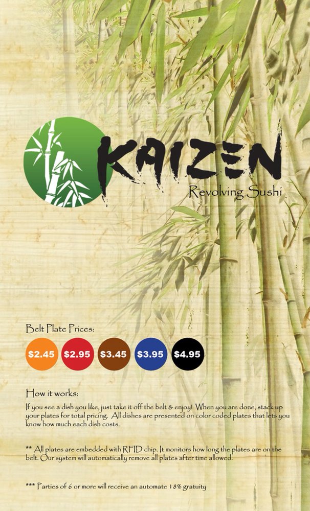 Welcome to Kaizen Revolving Sushi, where culinary creativity meets an engaging dining experience in Las Vegas. This innovative sushi spot specializes in fresh, made-to-order dishes, expertly served via a unique delivery system featuring a charming little red truck. The menu boasts an extensive array of options, including cold appetizers like Yellowtail Sashimi and enticing rolls such as the King of Ocean Roll and the Spicy Tataki Roll.